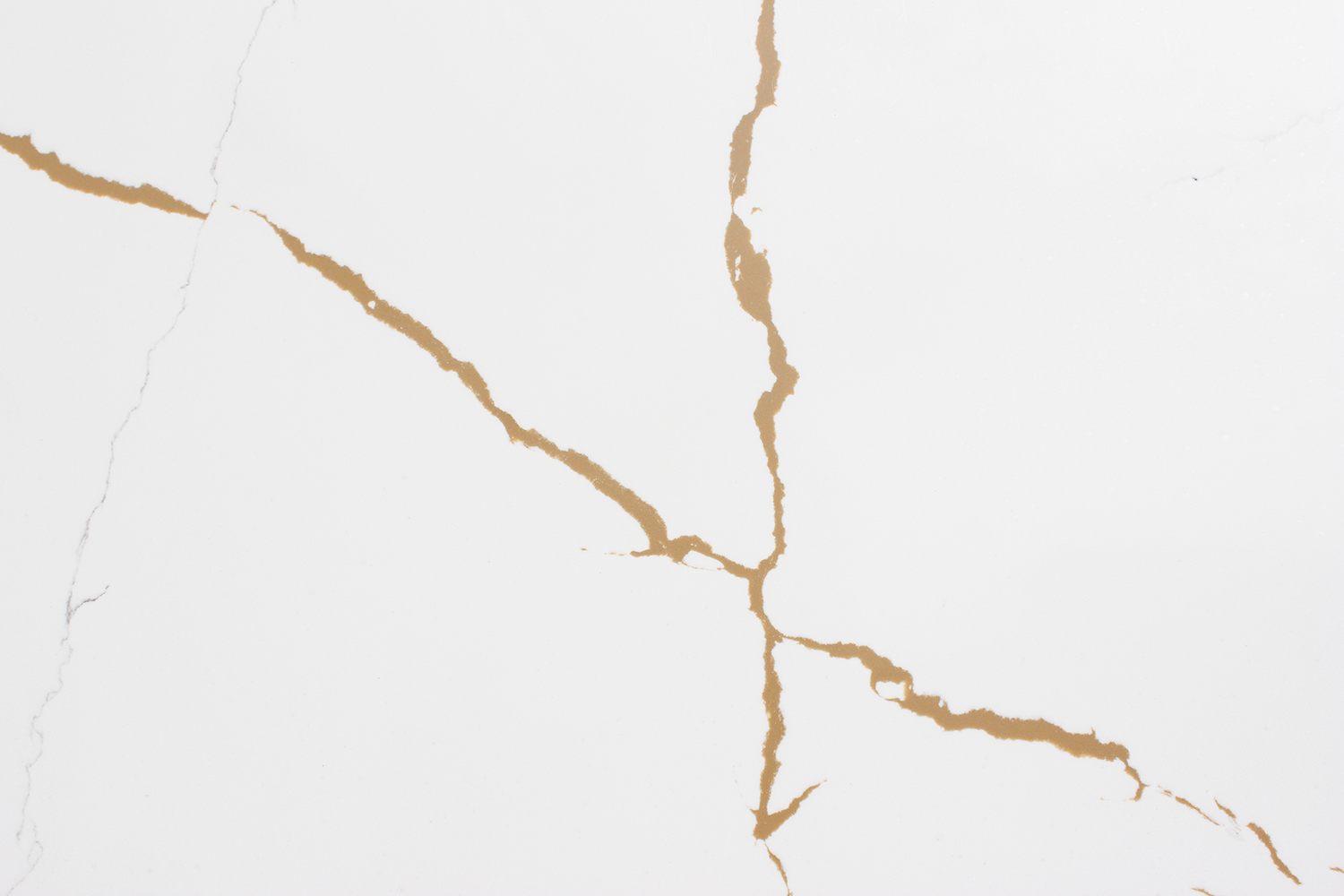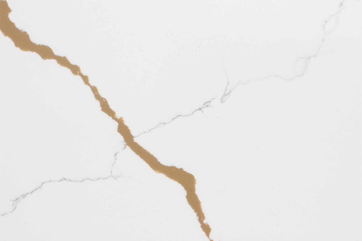 A bright super-white background highlighted with fine golden-brown veining, accented by subtle grey strands. The delicate movement creates a warm, sophisticated look with timeless appeal.